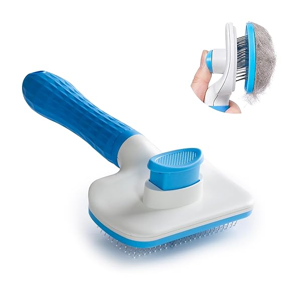 ペット用ブラシ痛くない スリッカーブラシ猫 スリッカーブラシ犬 犬 ブラシ 猫 ブラシ 犬くし ワンマッサージしながら抜け毛除去 ボタンを押して抜け毛が簡単に取れる ペットグルーミングブラシ 猫・犬兼用 短毛中毛長毛ペットケア ブラシ (スカイブルー